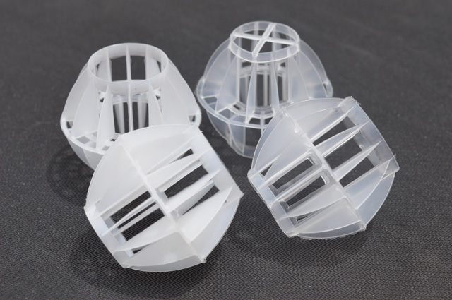 多面空心球中間鏤空結(jié)構(gòu)形成空隙大,不易被阻塞的特性。這種結(jié)構(gòu)在空氣洗滌、廢氣吸收、灰塵過濾等廢氣處理工程方面應(yīng)用,具有處理風(fēng)量大、阻力小的特點。由于多面空心球的空隙中有較高的滯液量,可使塔內(nèi)液體停留時間長,從而增加了氣體與液體的接觸面積和接觸時間。
