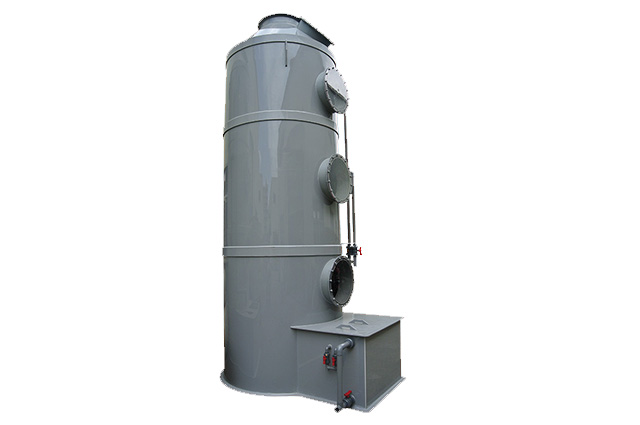 PPs洗滌塔結構:洗滌塔由除霧層、噴淋層、填料層、風機、風管、塔體、供水箱、供水泵等部分組成。洗滌塔系統的風機組將收集到的廢氣吸入酸霧PPs阻燃洗滌塔內,流經填料層段(氣/液接觸反應介質),讓廢氣與填充物表面流動的藥液(洗滌液)充分接觸,以吸附廢氣中所含的酸性或堿性污物,廢氣經過洗滌后,達標排放。